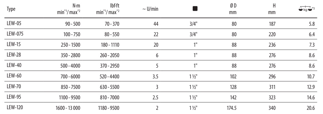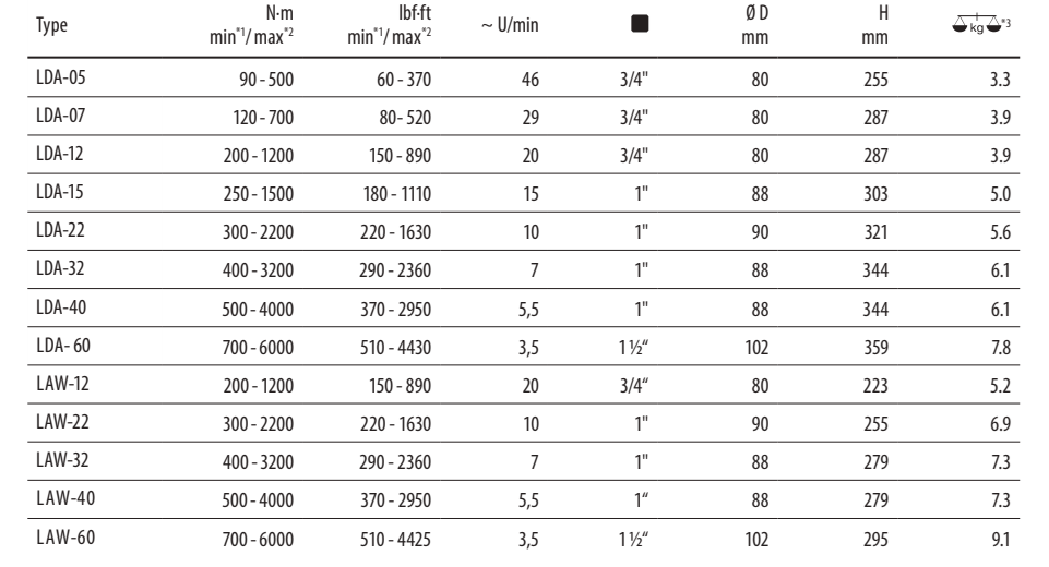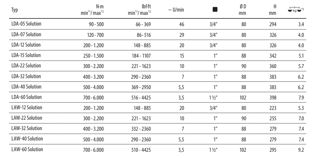 - Utahovací moment od 90 do 6.000 Nm